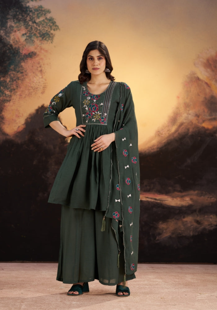 Theย Loop Green Festive Embroidered Kurta Set is designed for women who love classic festive colours with timeless ethnic elegance. Perfect for weddings, festive celebrations, and traditional occasions, this kurta set brings together rich colour, graceful embroidery, and everyday comfort.